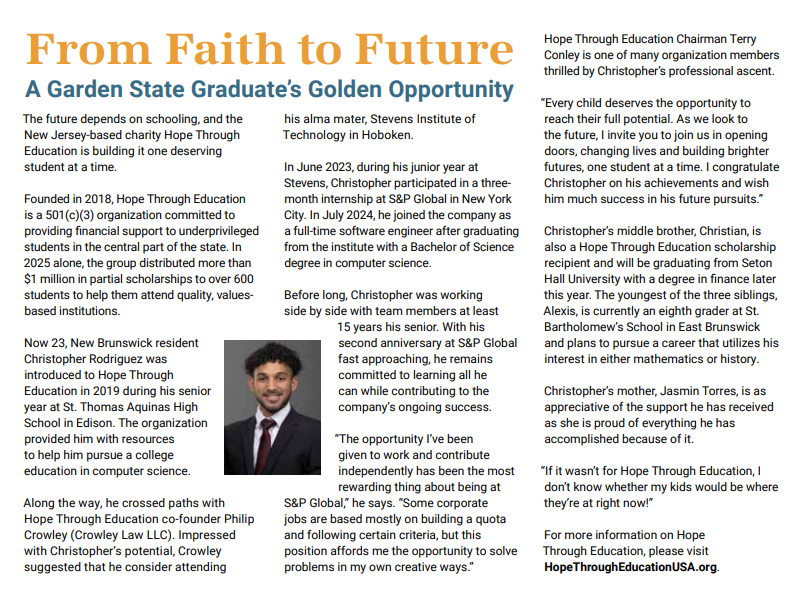 On September 13, 2025, Hope Through Education hosted their annual HOPE Gala at Trump National Gold Club in Bedminster, New Jersey. Hope Through Education is an independent 501(C)3 organization that provides economically disadvantaged children with scholarships to attend quality, values-based schools.